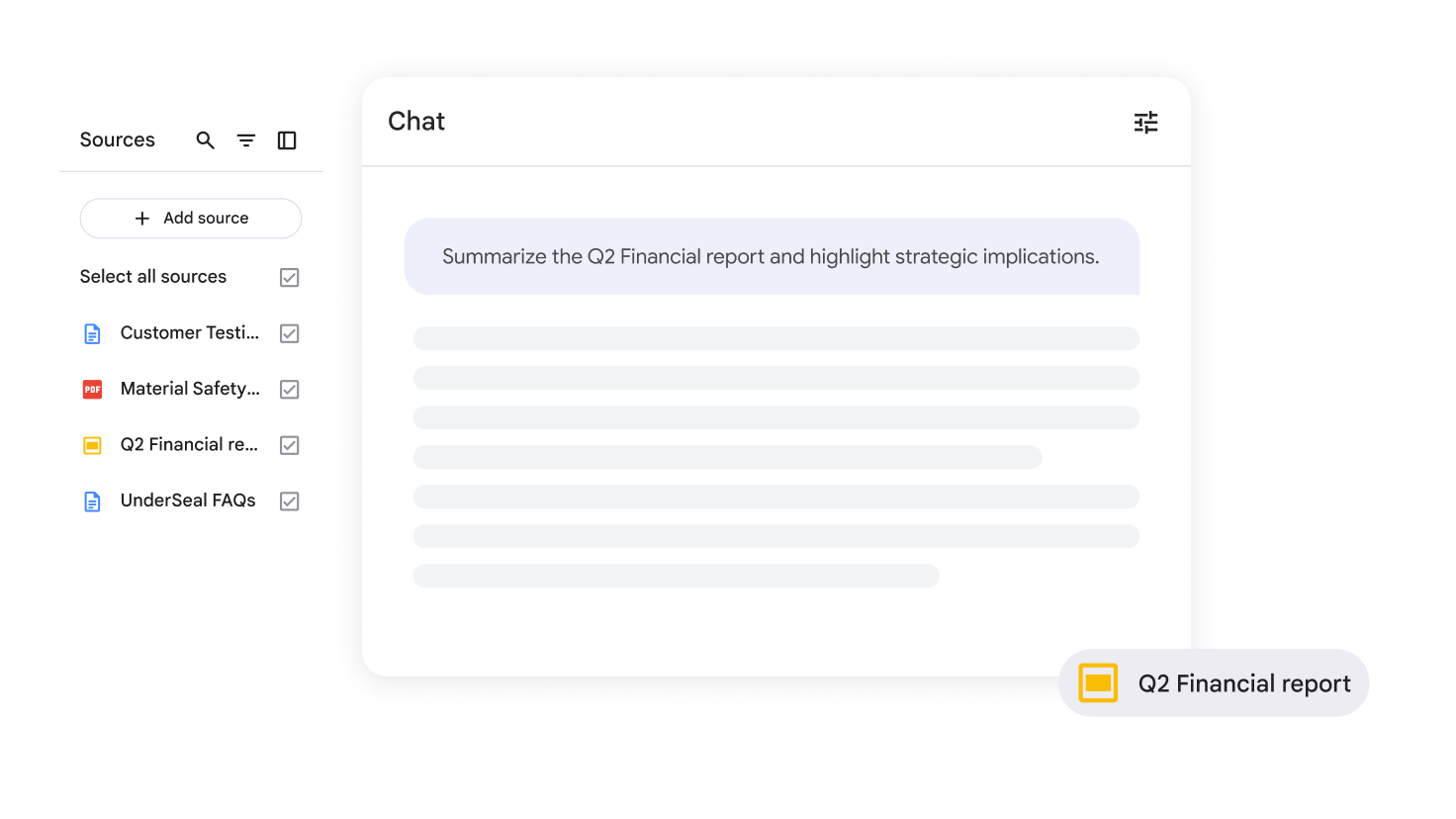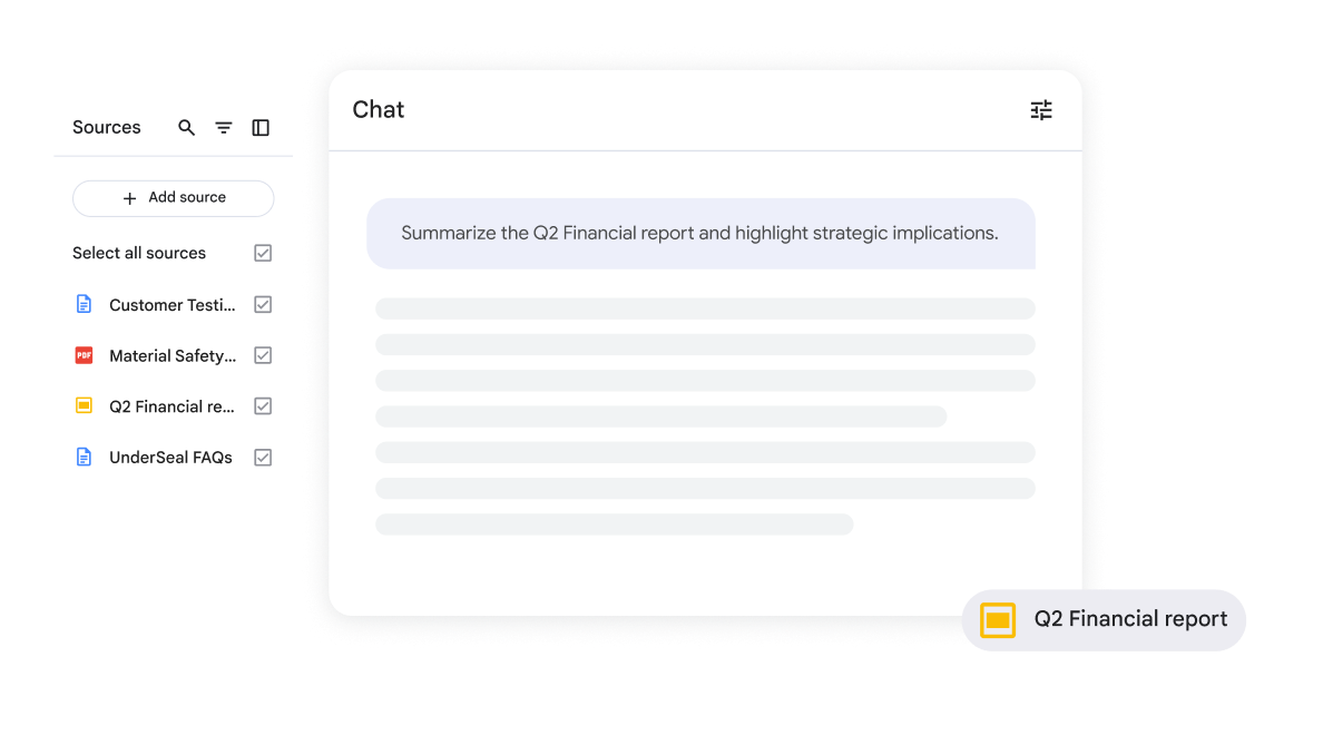 Upload product specs and market research to NotebookLM. Ask NotebookLM to create tailored meeting plans and answer product questions for more confident sales conversations.
