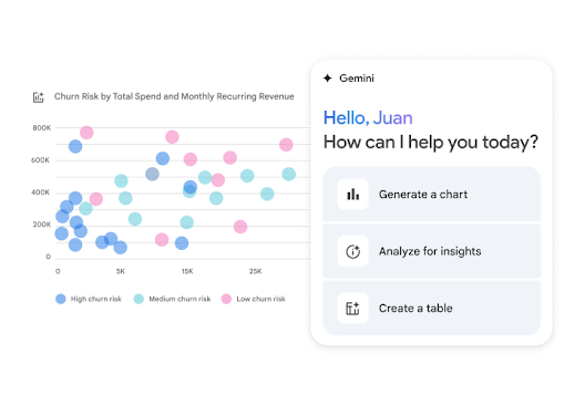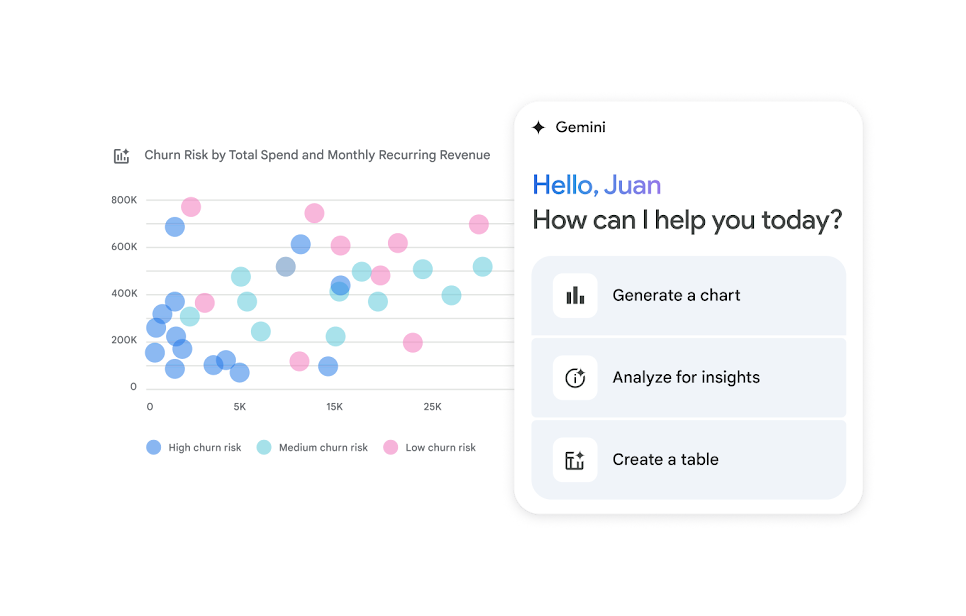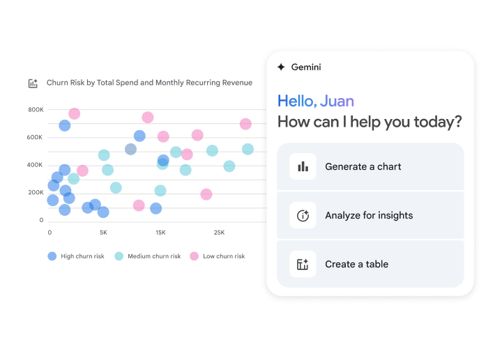 Gemini quickly helps you identify trends, outliers, and key findings, providing big-picture insights from your data with natural language prompts.